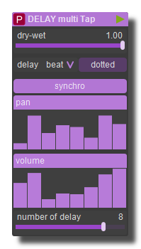 Stereo Delay effect where you can modulate values of pan and volume individually.