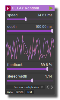 Unusual random modulated delay which produces light flange FX or chaotic weird FX.