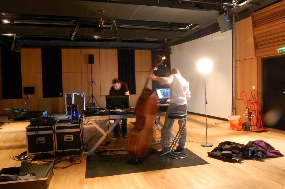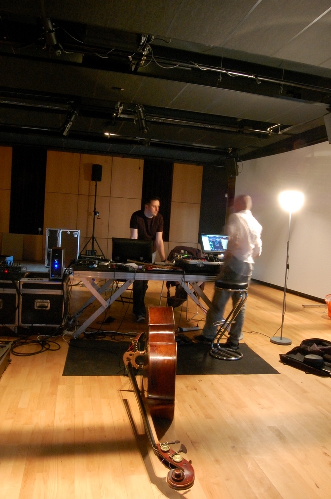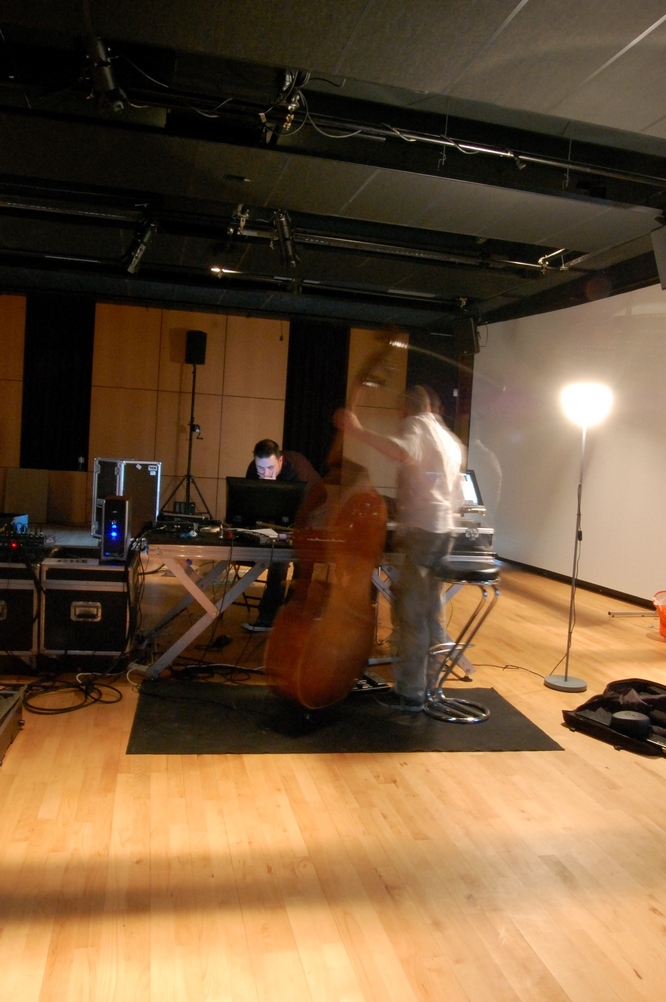 Avec affinités, ils mélangent leurs approches. L'un contrebasse en main donne un aspect de son instrument tantôt hybridé tantôt chaleureuse, l'autre évoque une électronique bruitiste, des artéfacts instrumentaux autant que les copeaux du réels découpés en fragments virevoltants et spatialisé. Cette pièce est une occasion d'entrecroiser, dans une composition commune, leurs pratiques musicales respectives. Entre liberté et écriture, ils arpentent leurs chemins dans une œuvre ouverte.