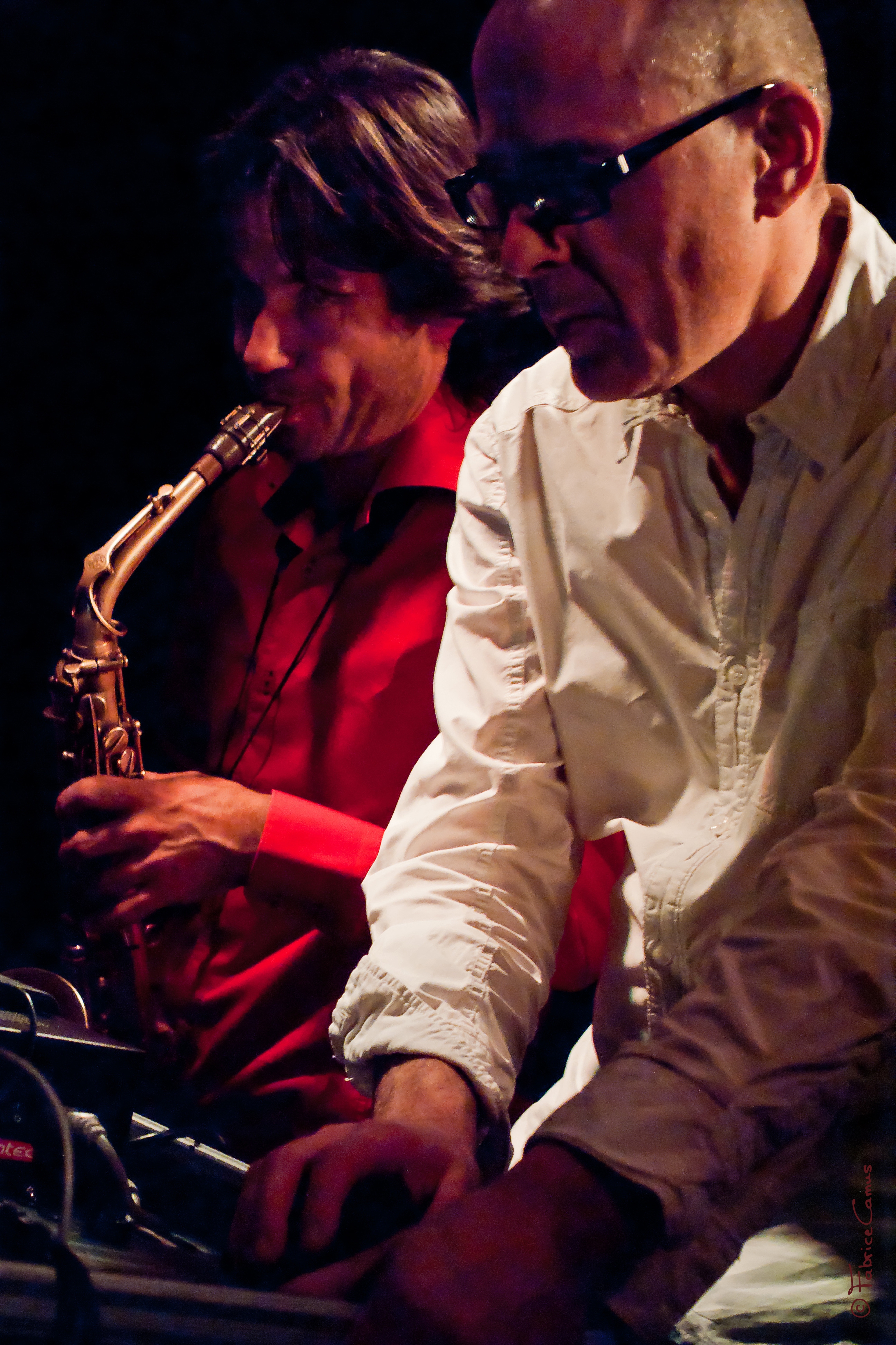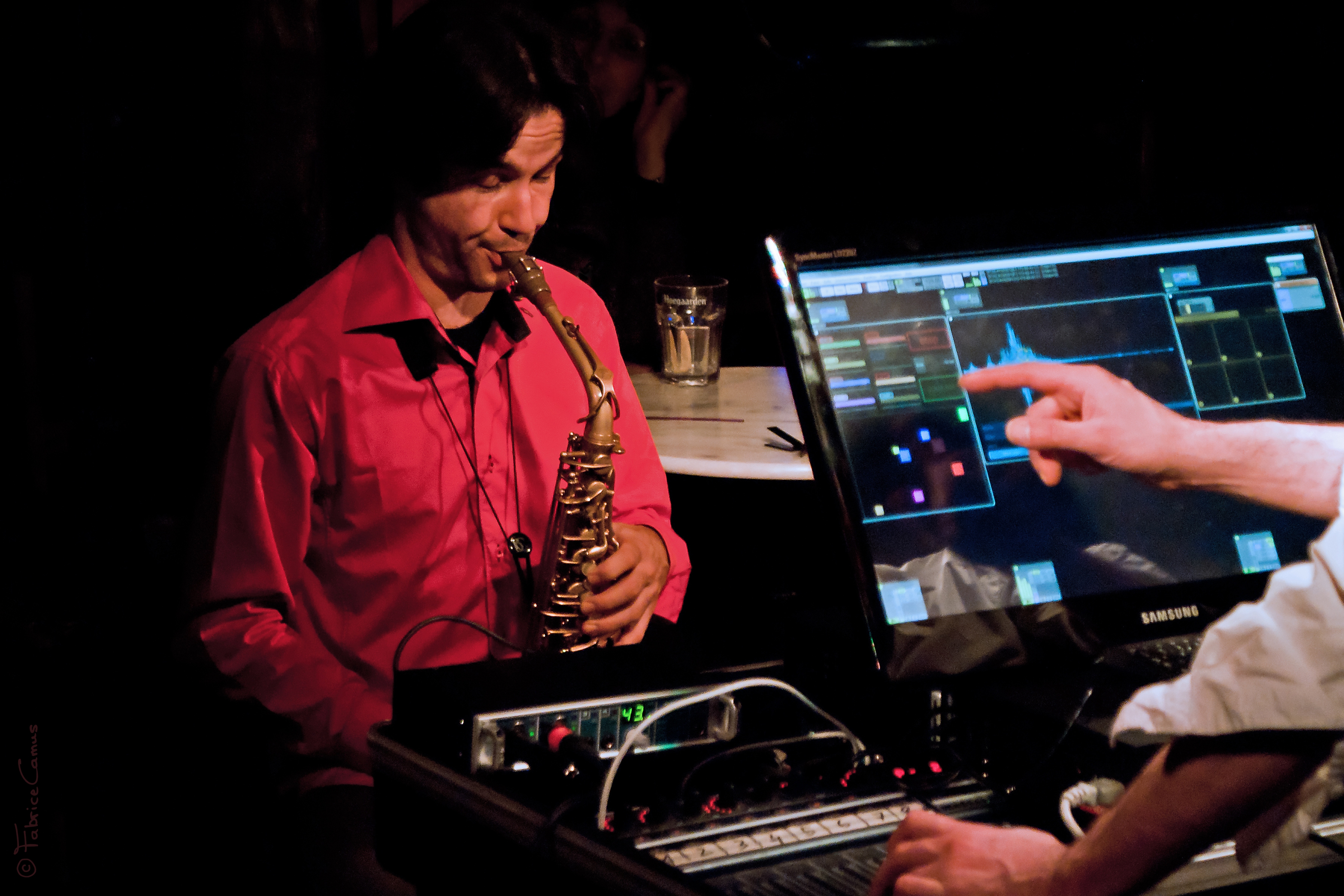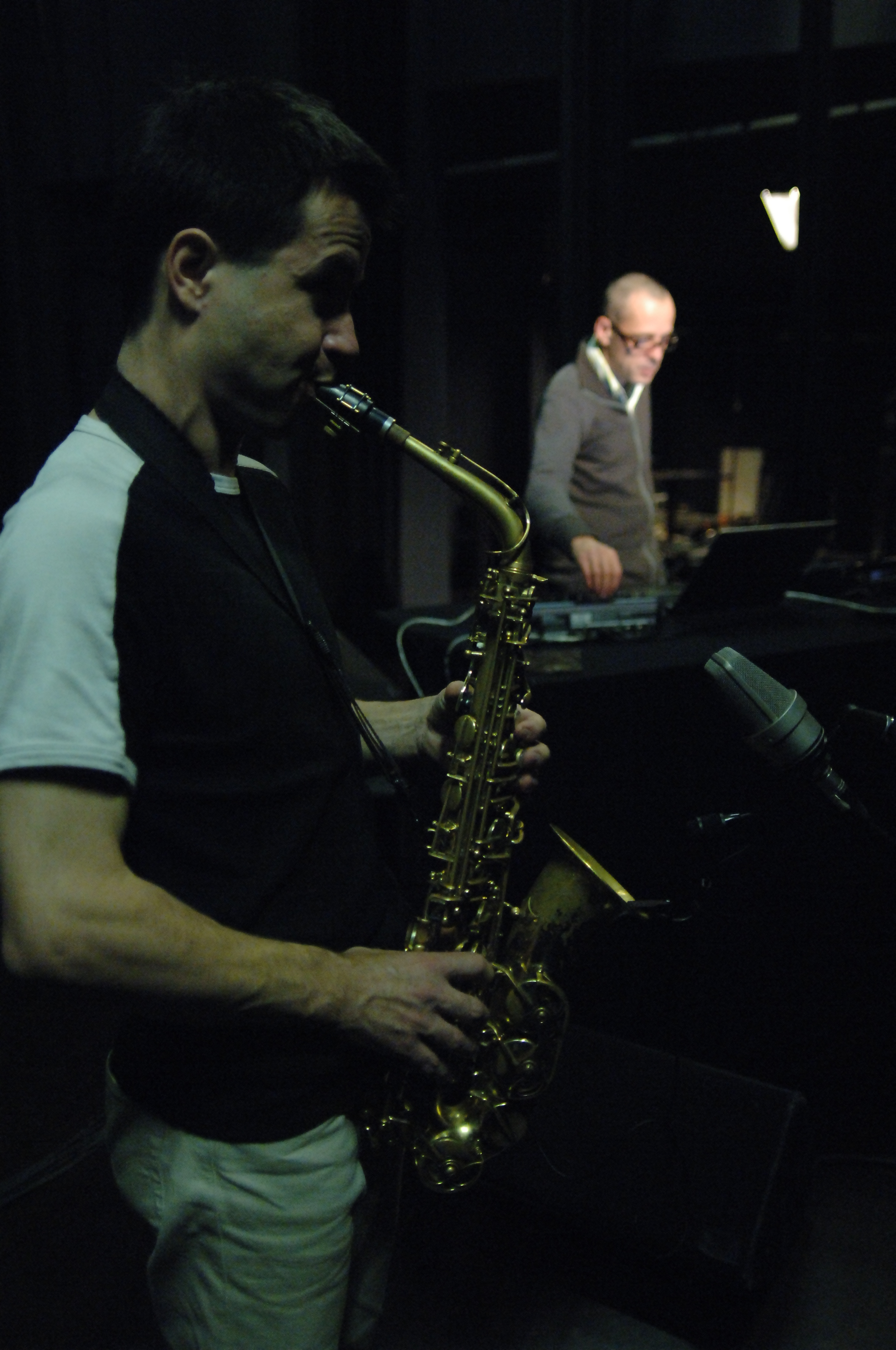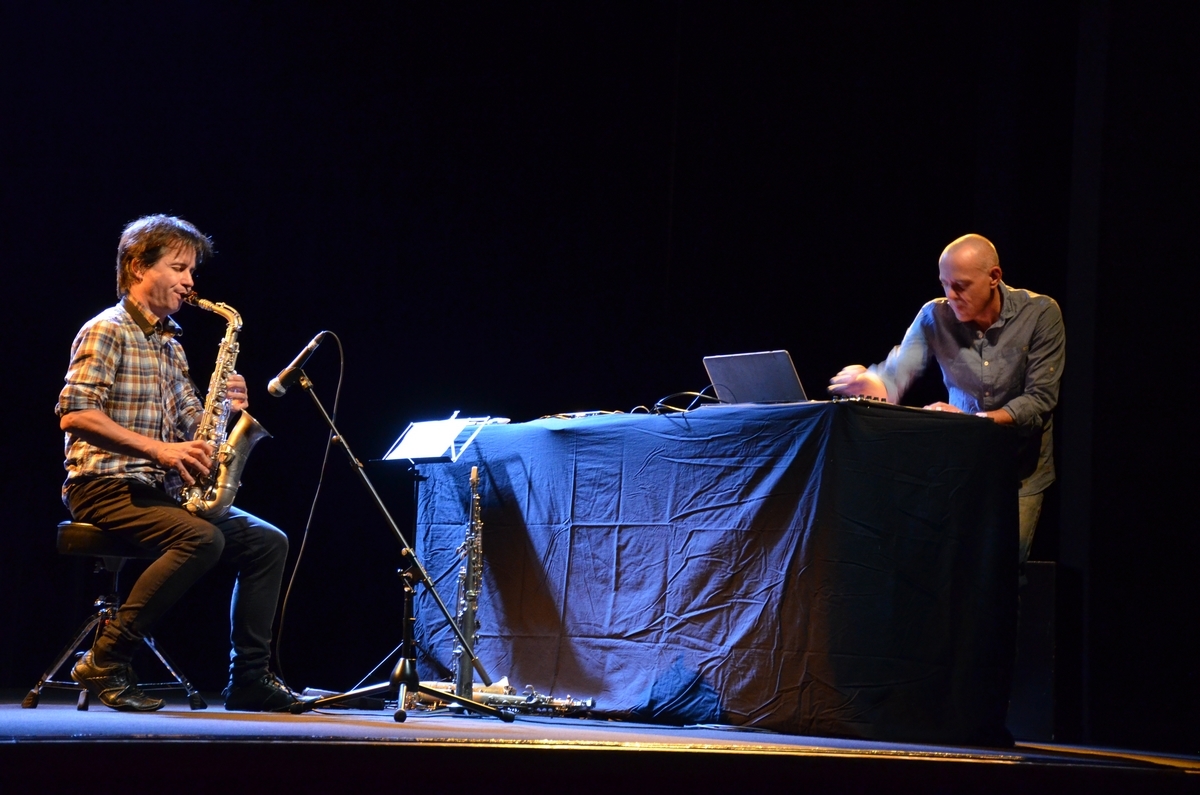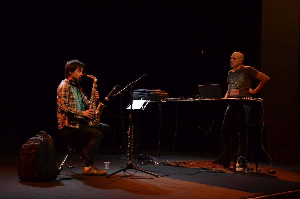 Depuis quelques années, Olivier Sens et Guillaume Orti mettent leurs recherches en commun. L’un développe son propre logiciel informatique, l’autre met en jeu des techniques particulières. Leur répertoire consiste en une série de pièces dont chacune implique un mode d’interaction spécifique entre source acoustique (saxophone) et traitement électronique (ordinateur). Un parcours au cours duquel le `duo se fraie un passage non conventionnel dans les méandres de l’improvisation libre, du synopsis compositionnel et de l’électroambiant. L’ordinateur, doté d’éléments d’écoute, interagit souvent de manière autonome.