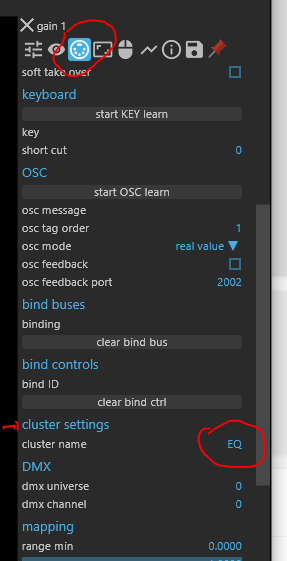 ensuite aller sur les différents faders de n'importe quel parch et les attacher au cluster en mettant le même nom de cluster