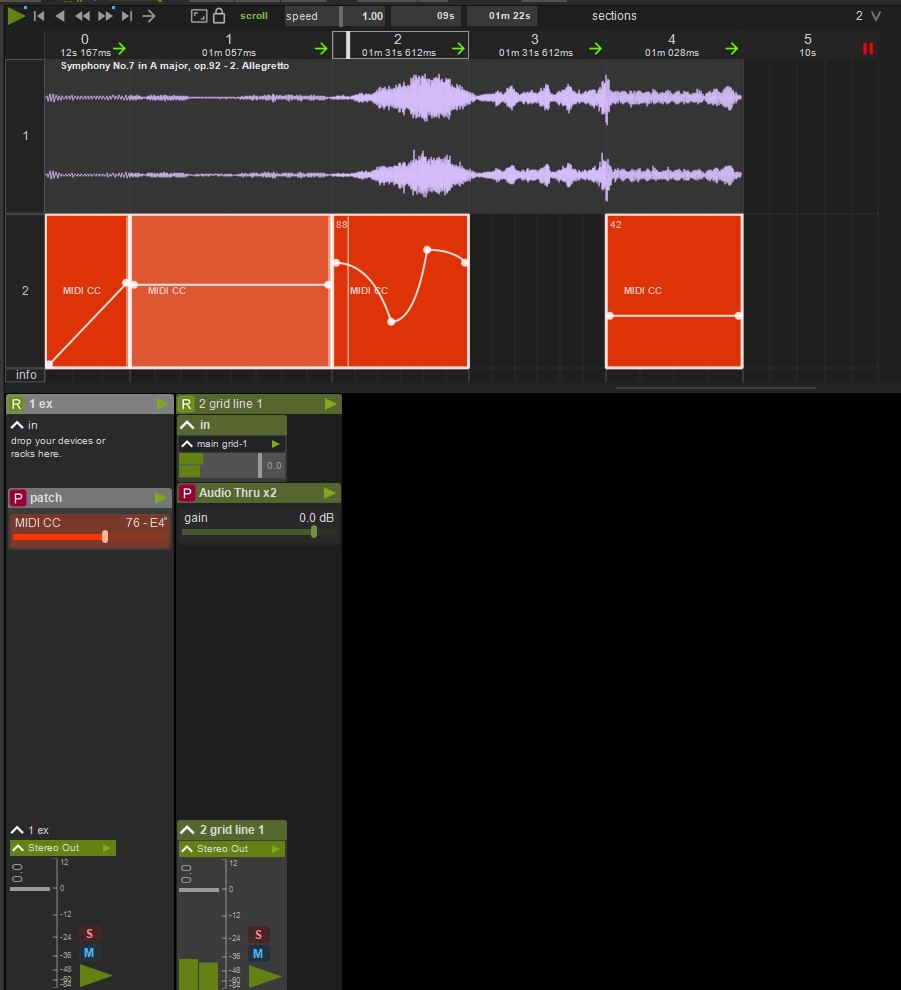 I need to create a project with just a long audio file around 60 minutes on one track and a second track consisting of just an automation curve sending control change . The idea is to be able for example to set at 2m30 a 63 CC value and so on .
