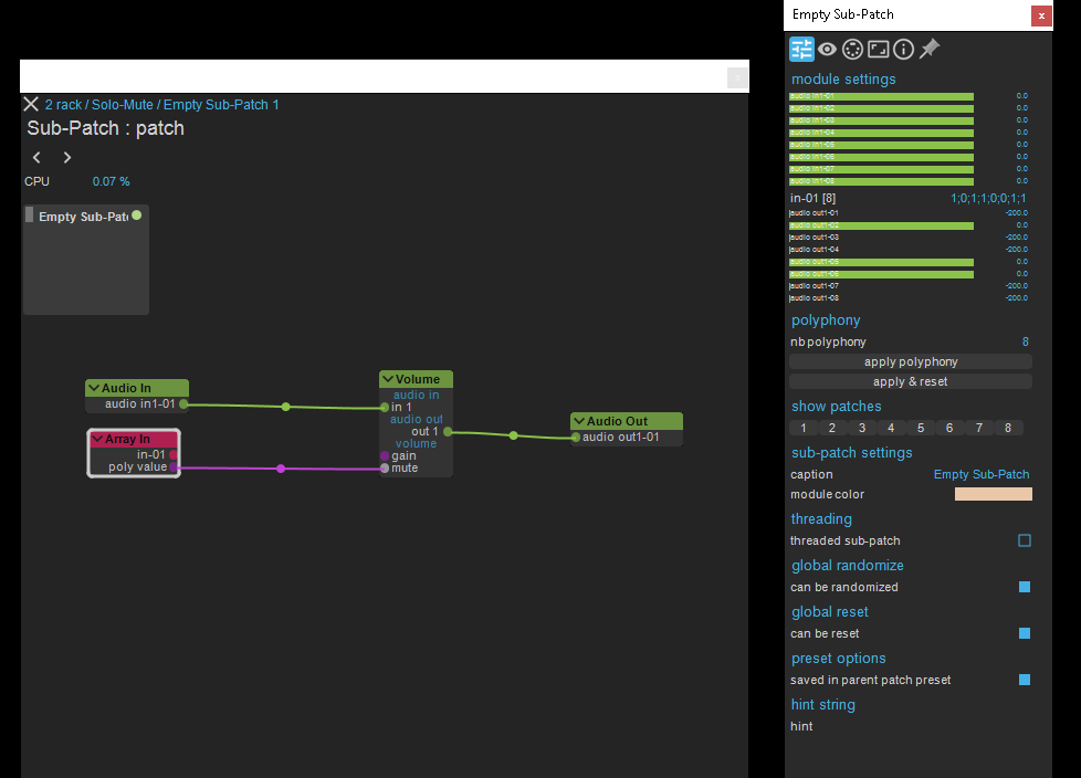 Array from Mute act on mute in the volume (muting each corresponding voice of the sub patch)
