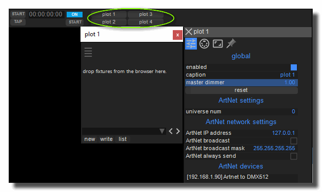 Sets the target plot for the pixel mapper. The pixel mapper will take the settings of the target plot (ArtNet IP address, sACN unicast IP etc.).
