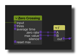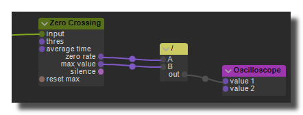 In the example below, we can see on the panel-oscilloscope-data module the result of the zero crossing rate analysis on a simple drum loop.