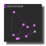 Transforms a spline into a set of points that can be handled by a laser compatible device. Can also merge the output with an incoming laser flow.